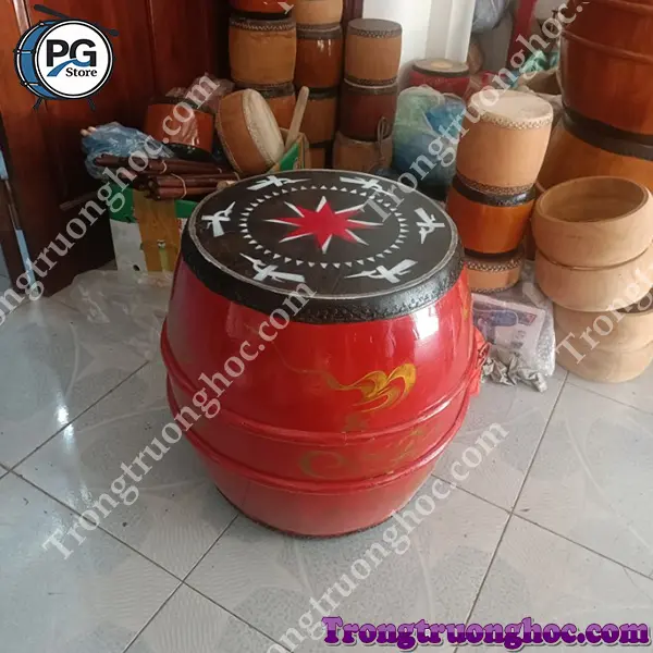 Kích thước thông dụng: mặt trống đường kính 30cm, chiều cao 24cm – phù hợp dùng tại bàn thờ gia tiên, ban thờ tổ, nhà thờ họ hoặc mang theo trong các buổi lễ cúng.